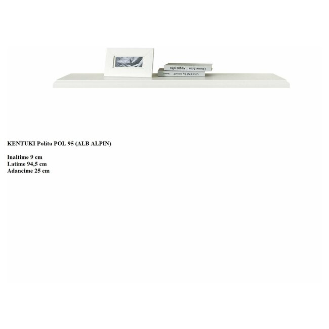 Poliță Idento, design compact, PAL și MDF, 94,5x25x3,5 cm, alb alpin