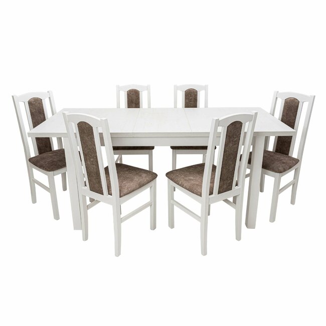 Set masă Maxim 4 extensibilă, cu 6 scaune B7 tapițate, design modern, 120x70x76 cm, alb