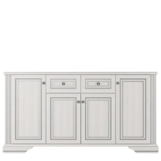 Comodă White 4D2S, 4 uși și 2 sertare spațioase, glisiere telescopice, PAL melaminat, 178.5x45x93.5 cm, Frasin Alb/Pin Argintiu