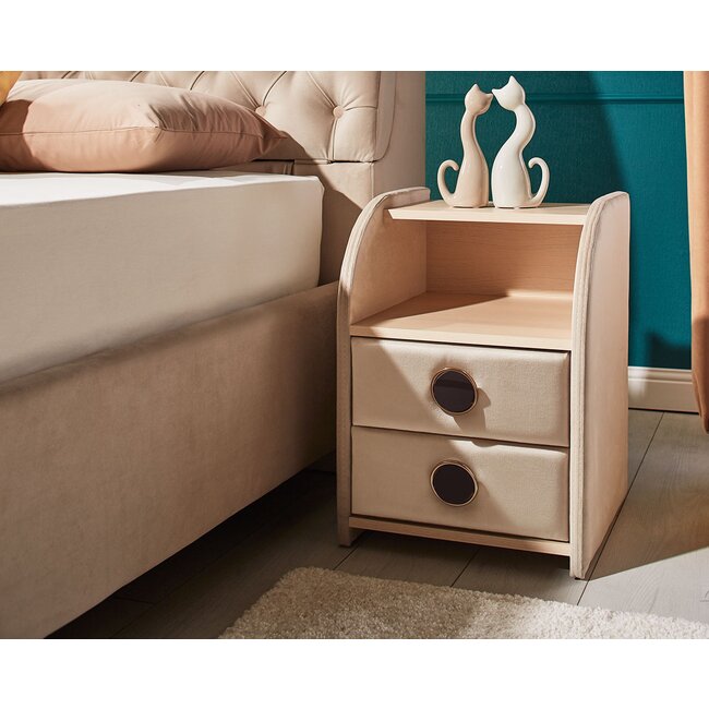 Noptieră Bio Life bej 57x42x53 cm, tapițată catifea, 2 sertare