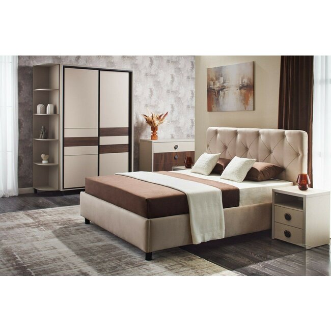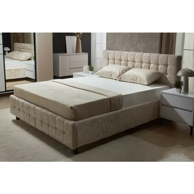 Pat Merida, cu tăblie tapițată, stofă premium, 160x200 cm, bej