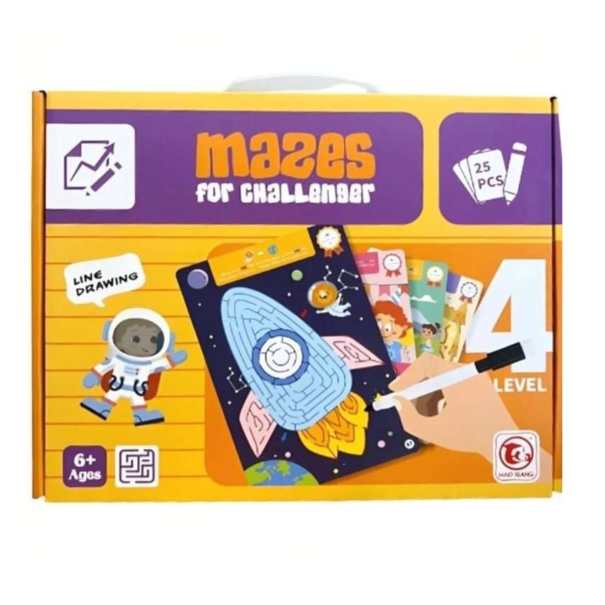 Joc educativ labirint cu 25 planse reutilizabile pentru copii 5 ani+