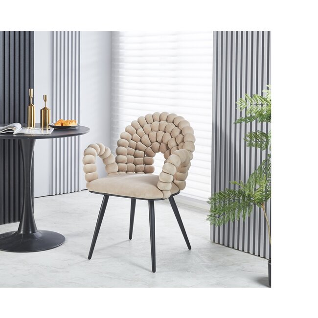 Scaun tapițat Amaral, confort sporit și design elegant, tapițerie catifelată, 47x42x88 cm, bej