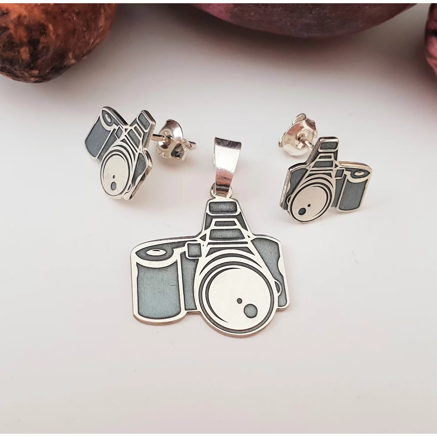 Set Pandantiv si Cercei - Aparat foto - Argint 925