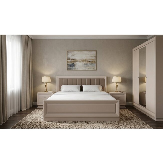 Set dormitor Largo 4 componente pat tapitat lux 160x200 cm, dulap 3 usi SZF3D, 2 noptiere KOM1S culoare cashmire