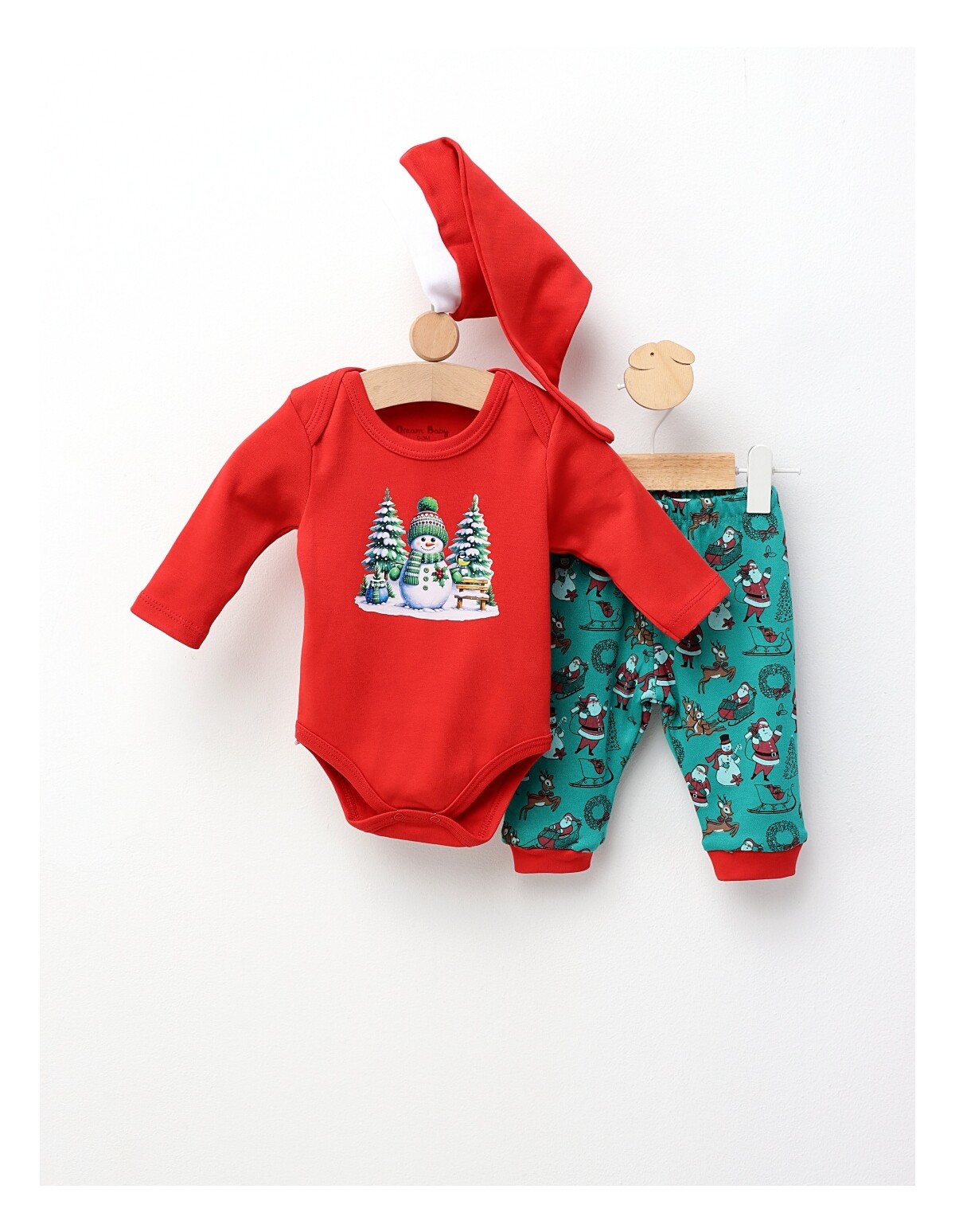 Set Craciun 3 piese, Snow Man rosu-verde