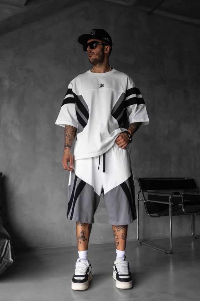 TRENING B-FASHION STRIPES OVERSIZE WHITE TRBI44(1866-67) (MĂRIME: M)