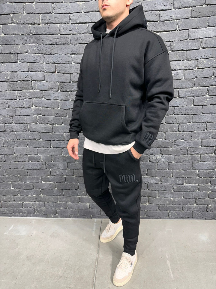 SET TRENING PRM FASHION OVERSIZED PREMIUM BLACK TRAS213(6079) (MĂRIME: XL)