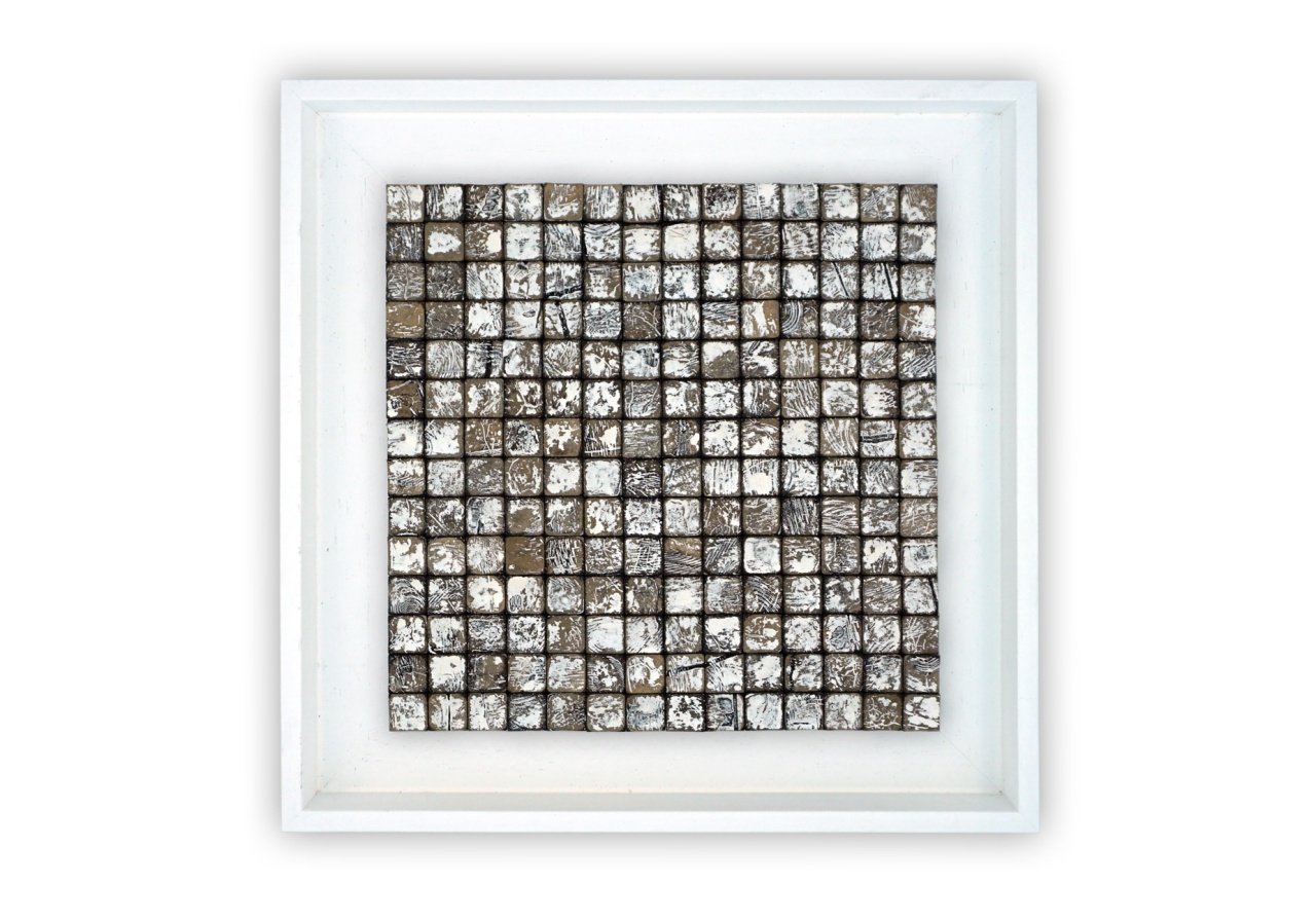 Panou decorativ 3D, Coconut, Honai Mosaic White&Brown, 6 placi 42x42cm, 1.05 mp