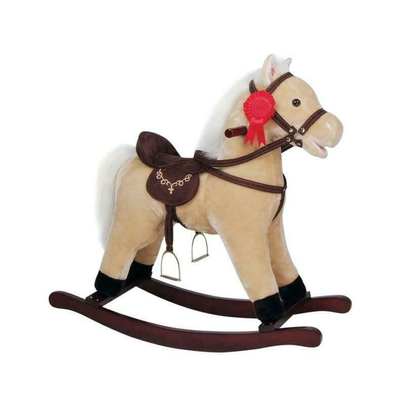 Calut balansoar din plus, Baby Mix, Cu efecte de miscare a gurii si a cozii, Cu melodie de cowboy si efect de galop, Maro Deschis