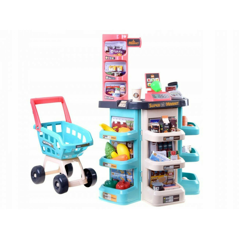 Set de joaca, Jokomisiada, Supermarket, Cu accesorii, casa de marcat, produse, cos de cumparaturi, 3 ani+, Multicolor