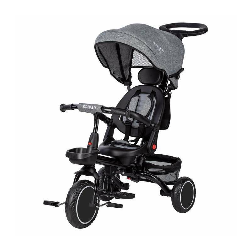 Tricicleta copii, Elipso, Free2Move, Cu sezut rotativ 360 grade, Reglabil, Roti EVA, Mecanism de pedalare libera, Grey