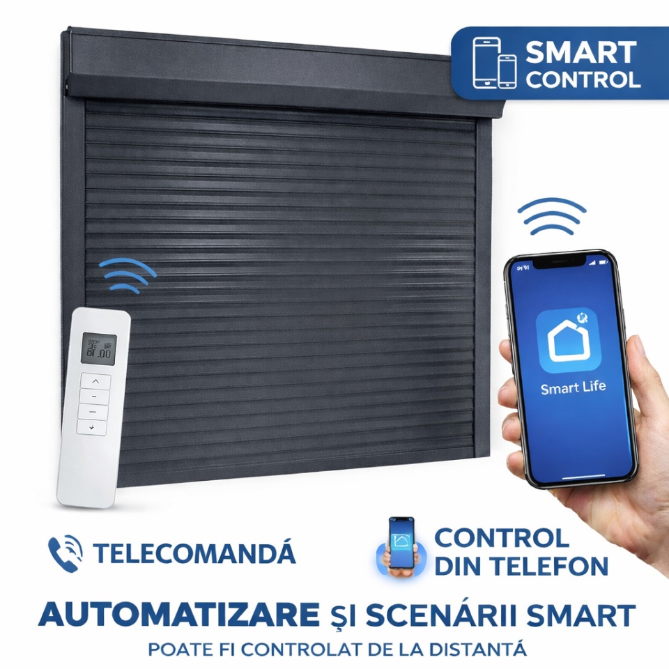 Rulou Exterior Aluminiu Antracit cu Motor, Telecomandă și Control din Telefon