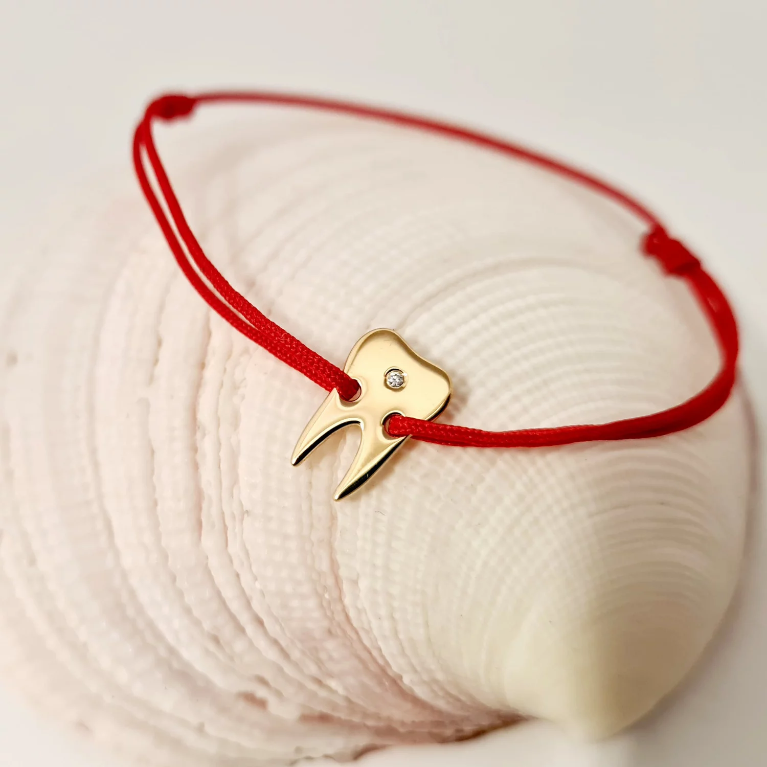 Bratara cu Diamant Natural - Pandantiv dinte - Argint 925 placat cu Aur Galben 18K - Snur reglabil, diverse culori