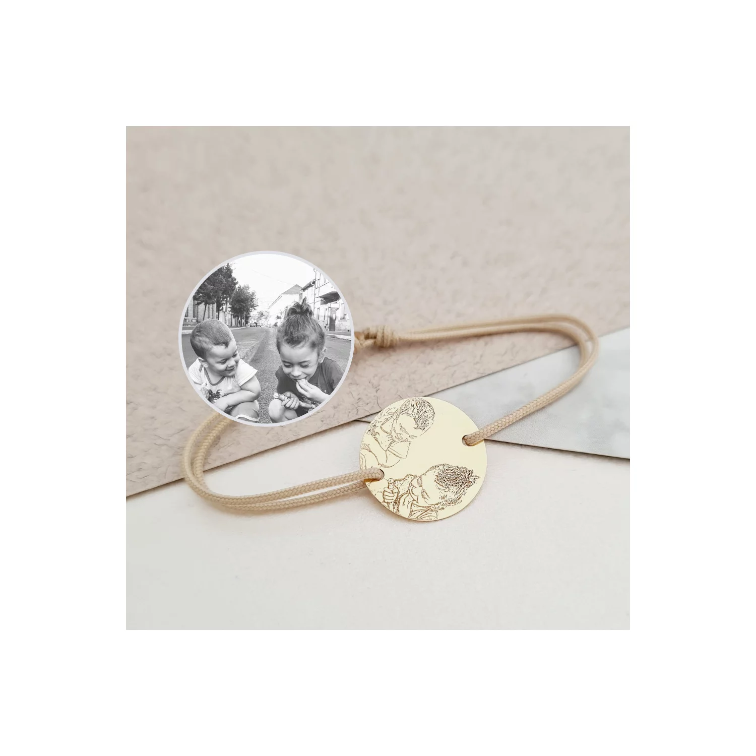 Bratara personalizata cu poza - Povestea noastra - Banut 15 mm - Aur 9K - Snur reglabil, diverse culori