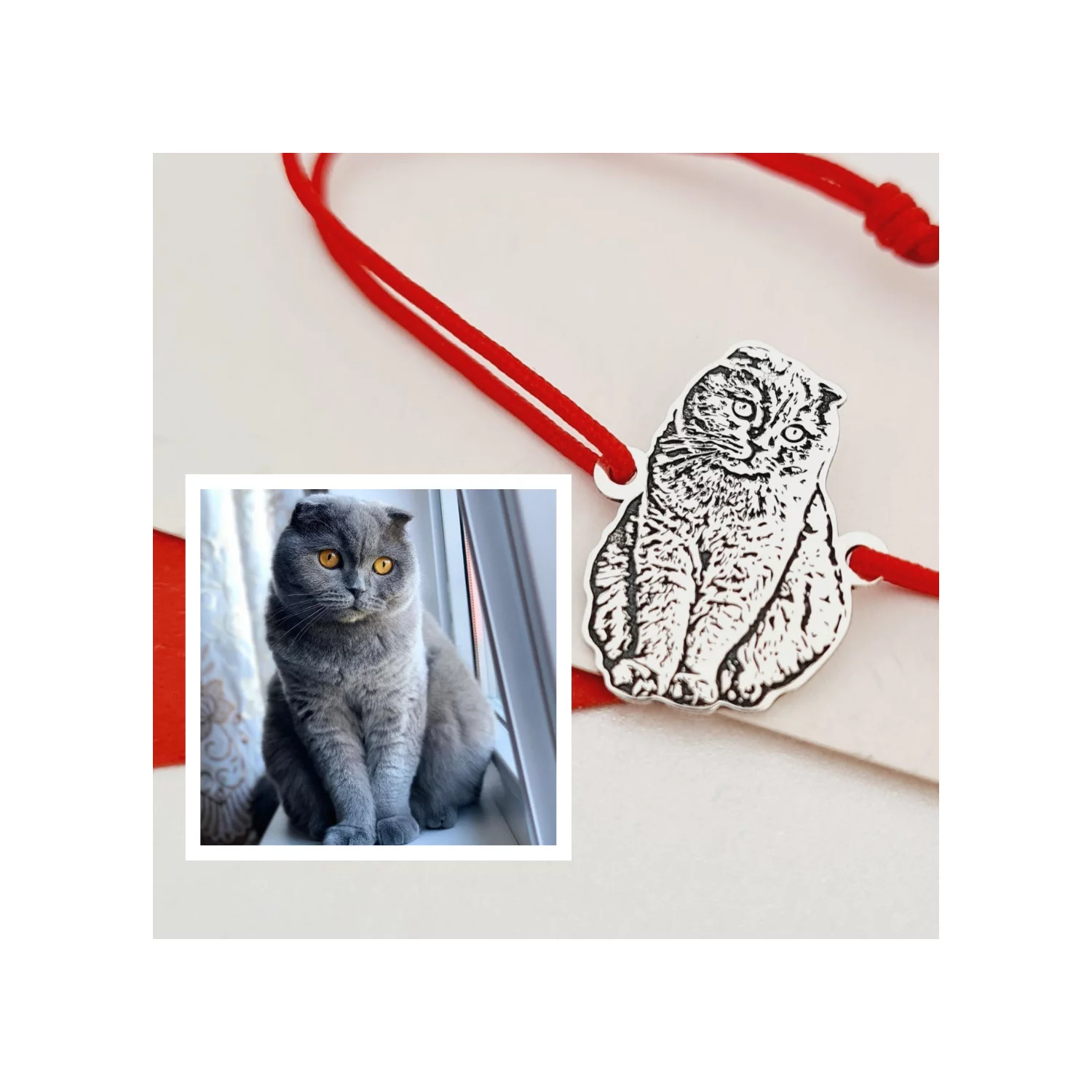 Bratara pisica iubita - Personalizare cu poza - Argint 925 - Snur reglabil, diverse culori