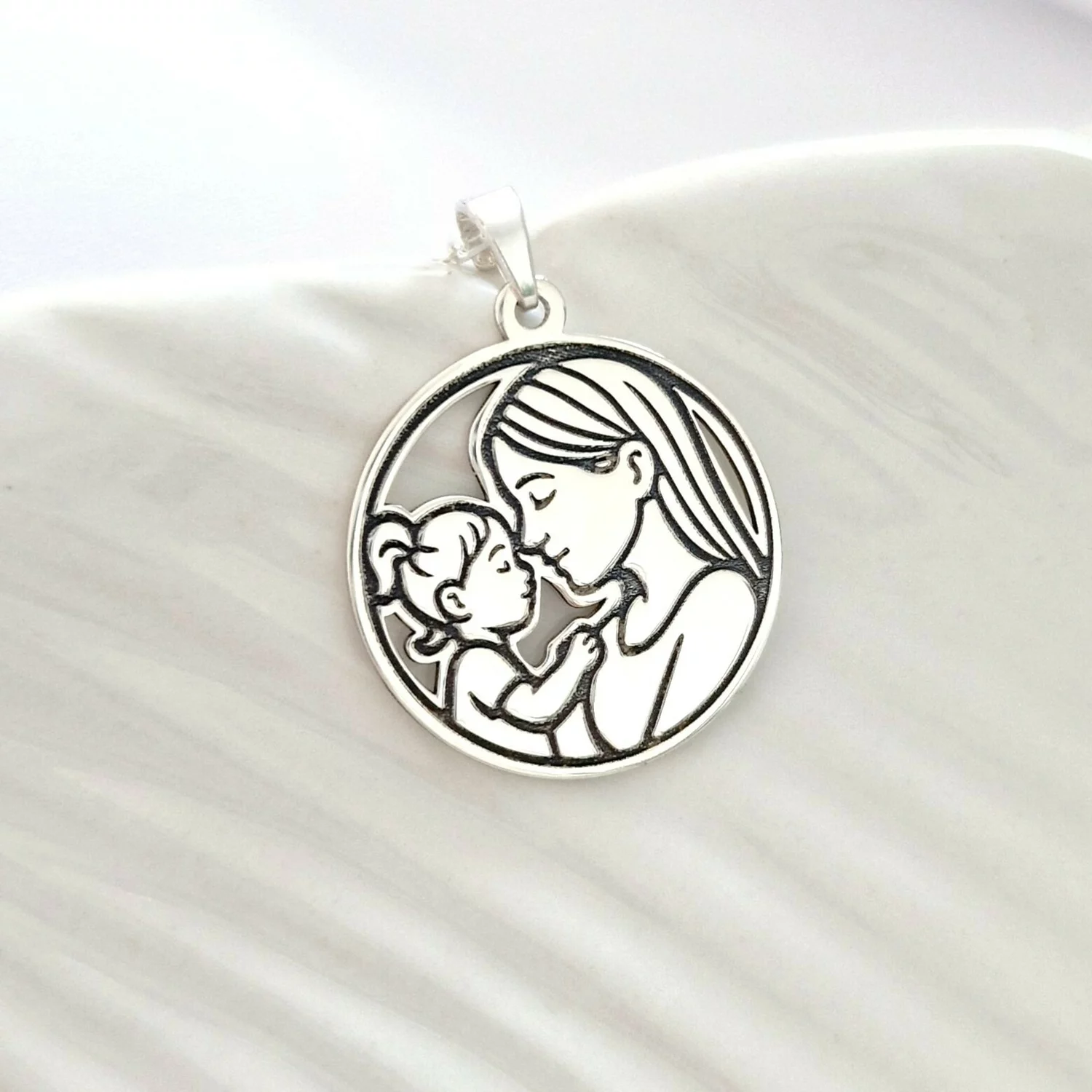 Lantisor cu medalion rotund - Dragoste pura - mama si fetita - Argint 925 - Lant forzatina