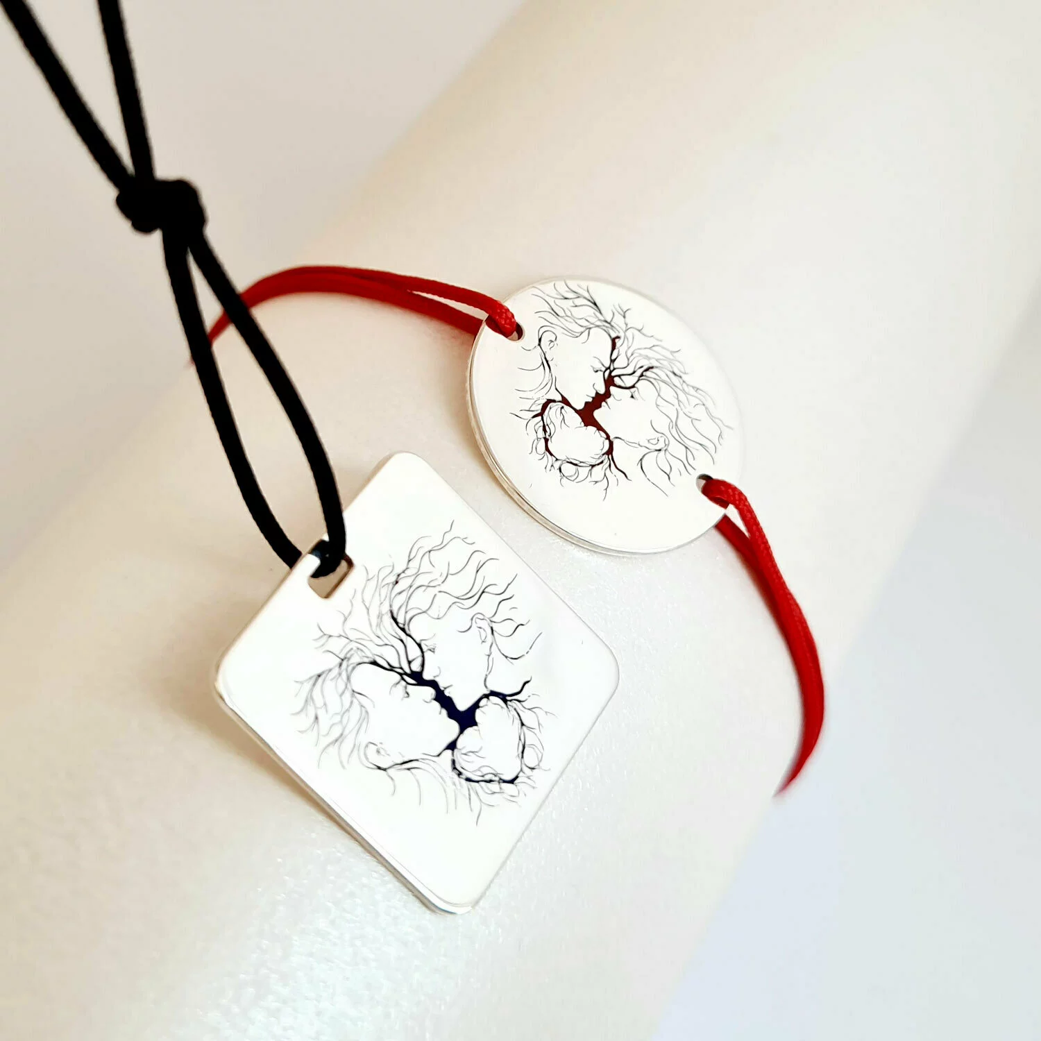 Set pandantiv si bratara decorate cu email colorat - Dragoste cu radacini adanci - Argint 925