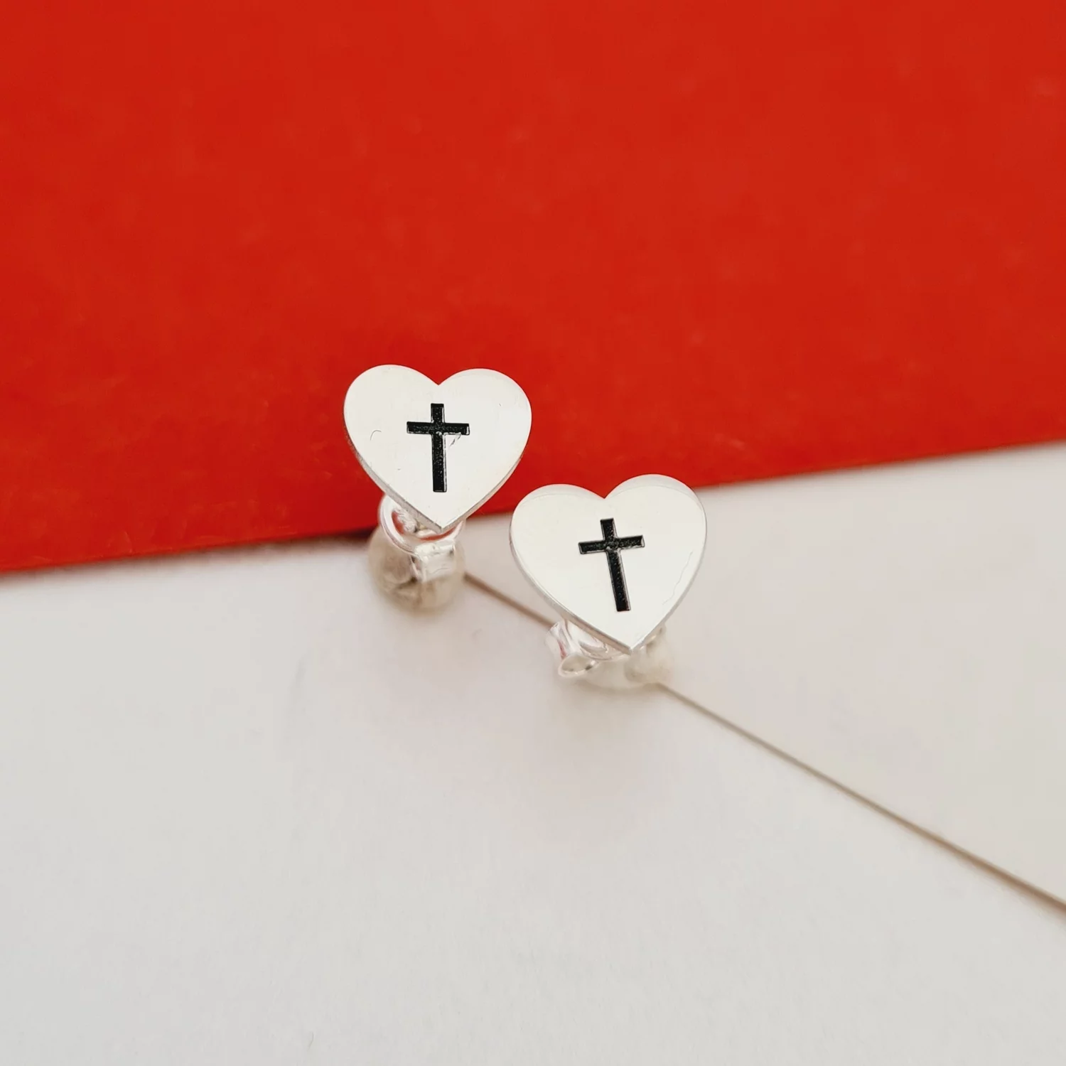 Cercei Iubire si Har - Model inima si cruce - Argint 925 - Inchizatoare surub