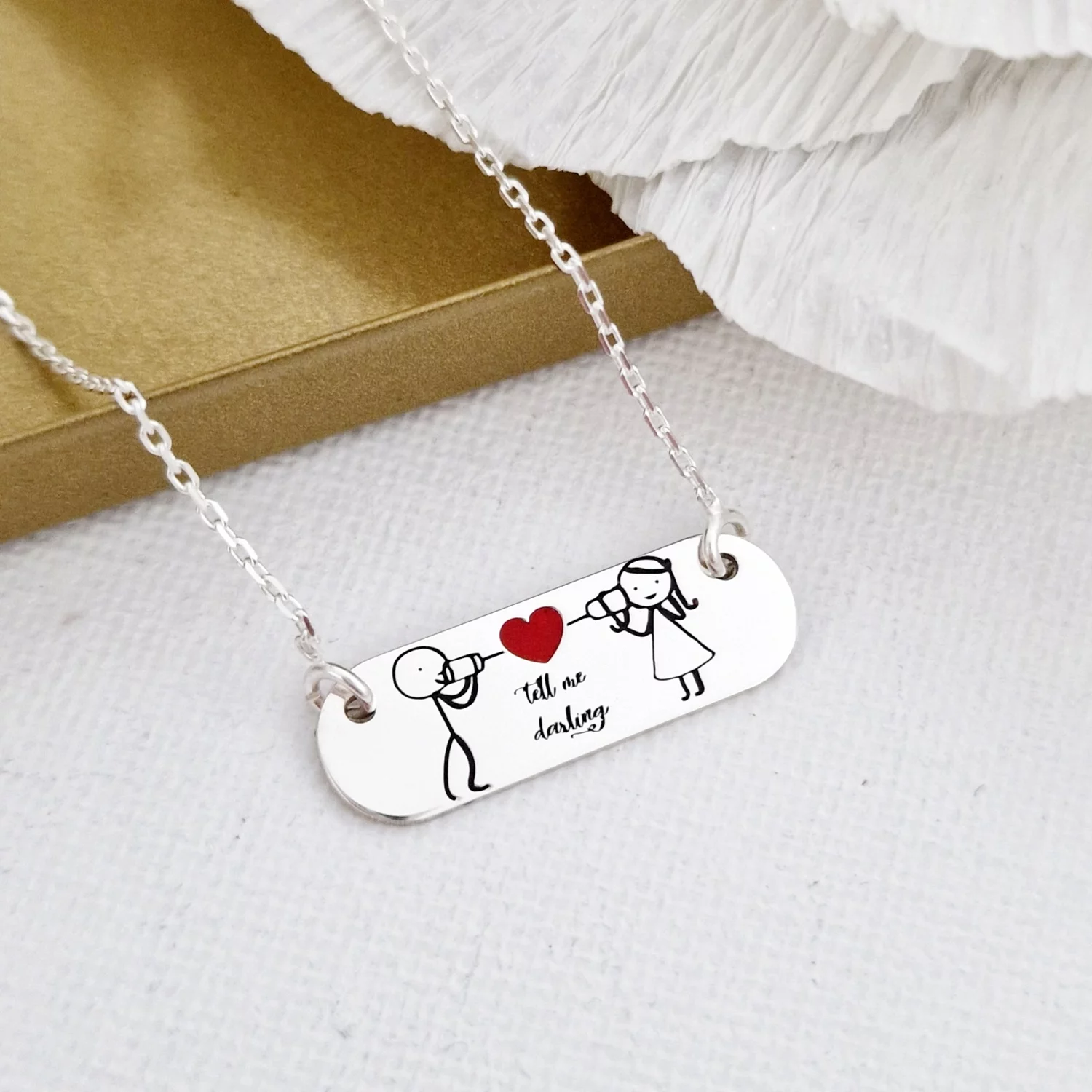 Lantisor personalizat si decorat cu email colorat - Iubire pe fir - Argint 925