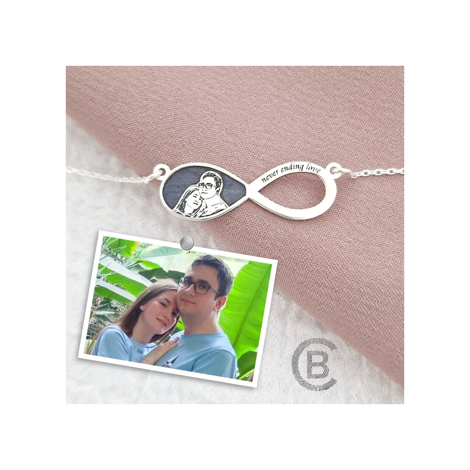 Lantisor personalizata cu poza - Iubire fara sfarsit - Model fotogravura relief - Argint 925