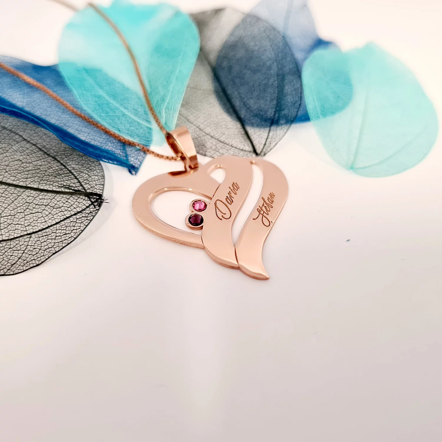 Lantisor Valuri de Iubire - 4 nume si cristale Swarovski - Argint 925 placat cu Aur Roz 18K