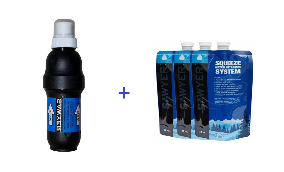 SET PROMOTIONAL - SAWYER SQUEEZE SP129 filtru profesional de apa potabila + 3 pungi compatibilie de 1litru