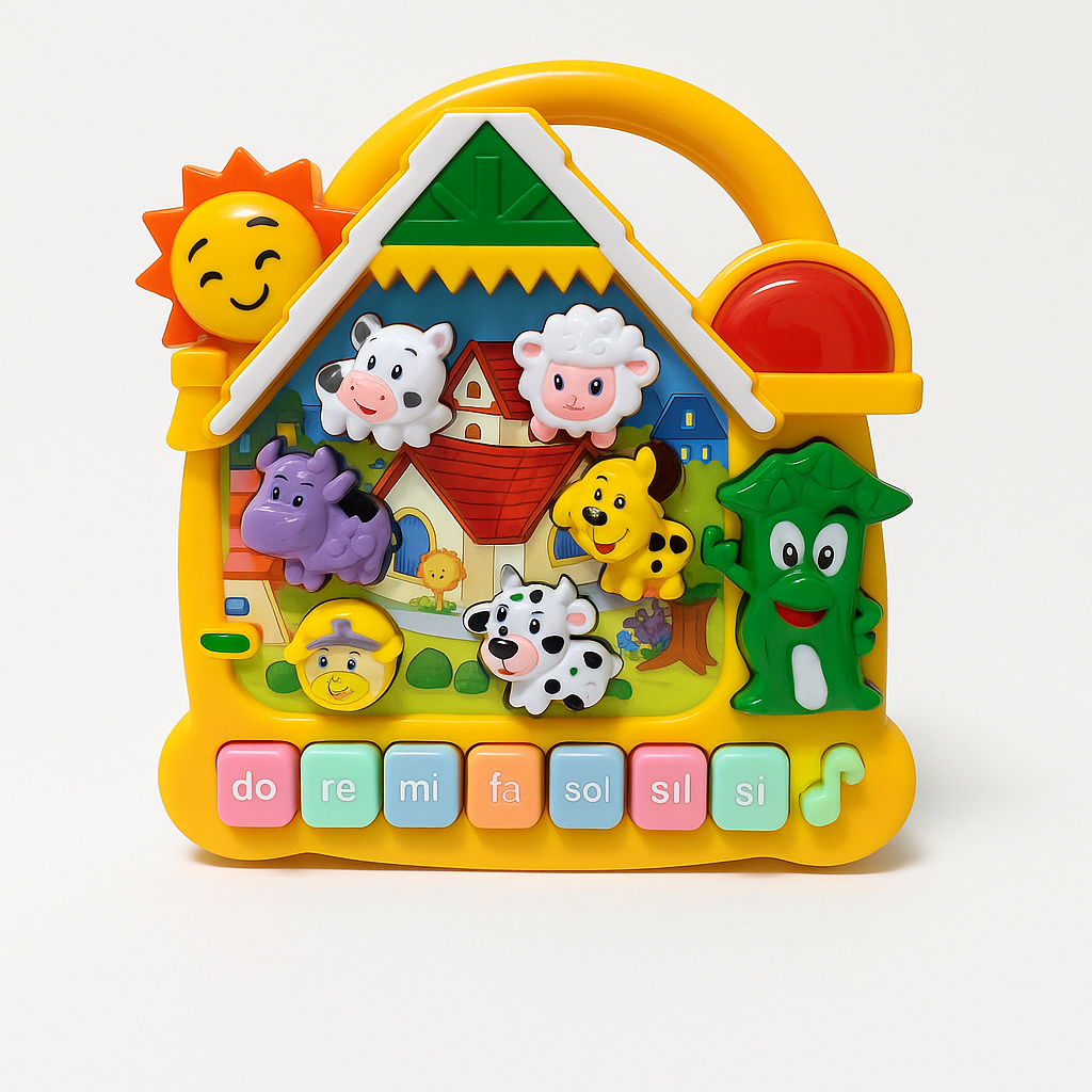 Jucarie Muzicala Casuta Fericita cu Animale - 16 cm, Lumini si Sunete, Note Do-Re-Mi, 3+ ani
