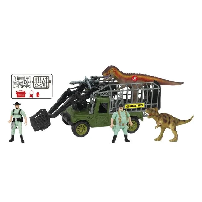 Set vanatoare de dinozauri, cu masina si figurine, sunete realiste, 49x15x32cm, multicolor
