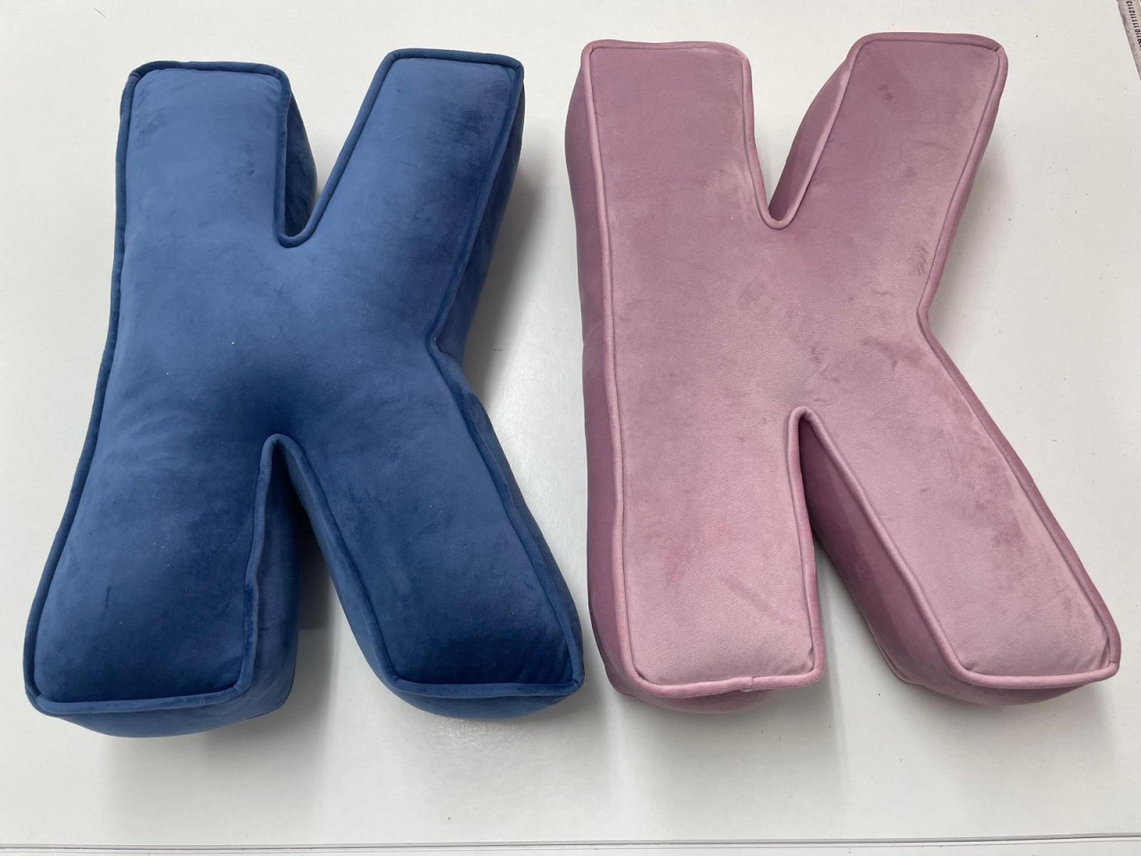 Perna XL, 42cm, Hiko Name litera K din catifea albastra sau roz, cu vipusca