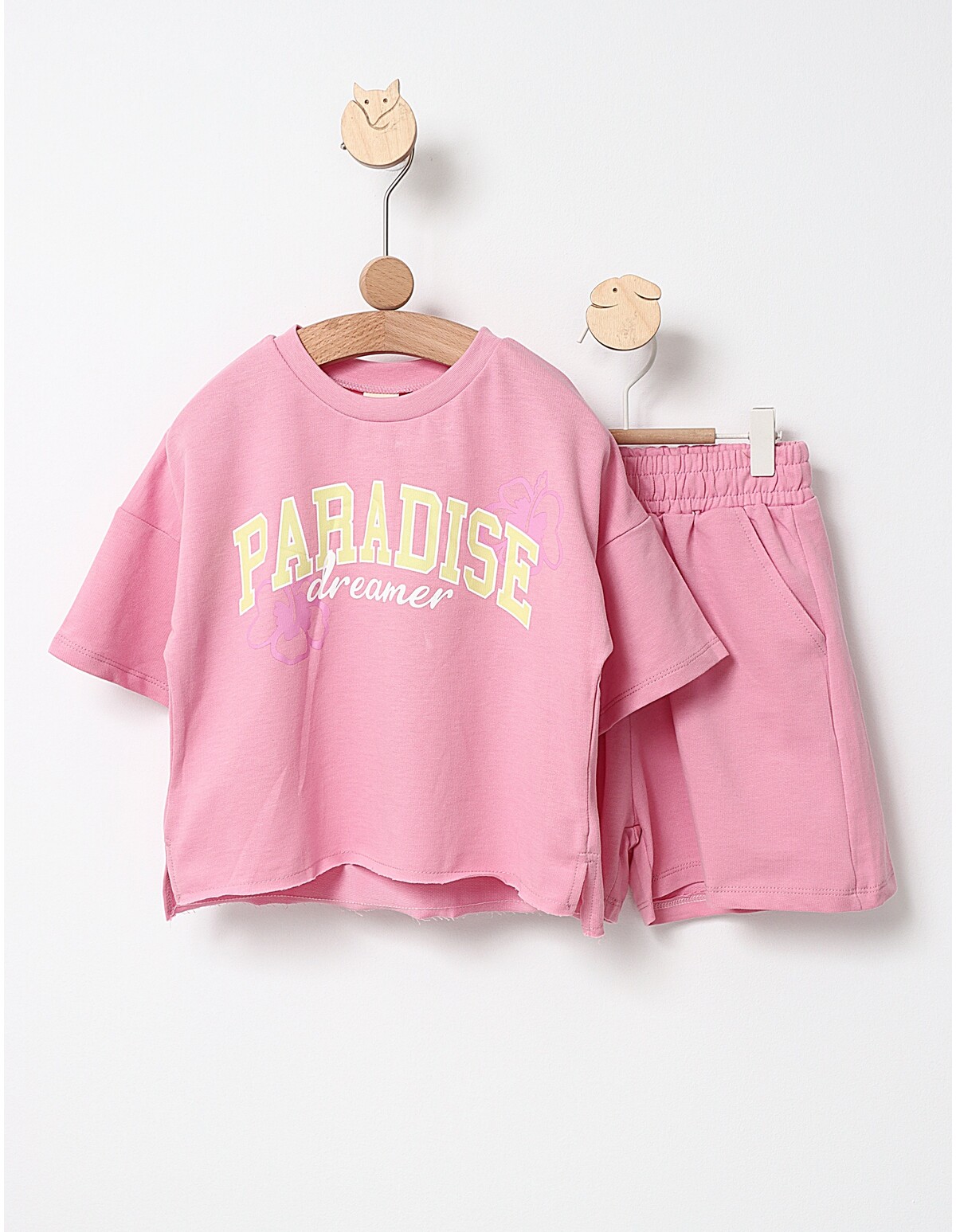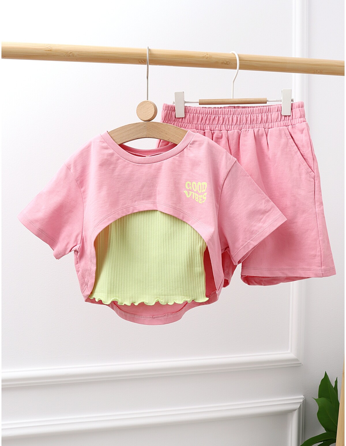 Costumas vara Crop Top Vibes cu roz