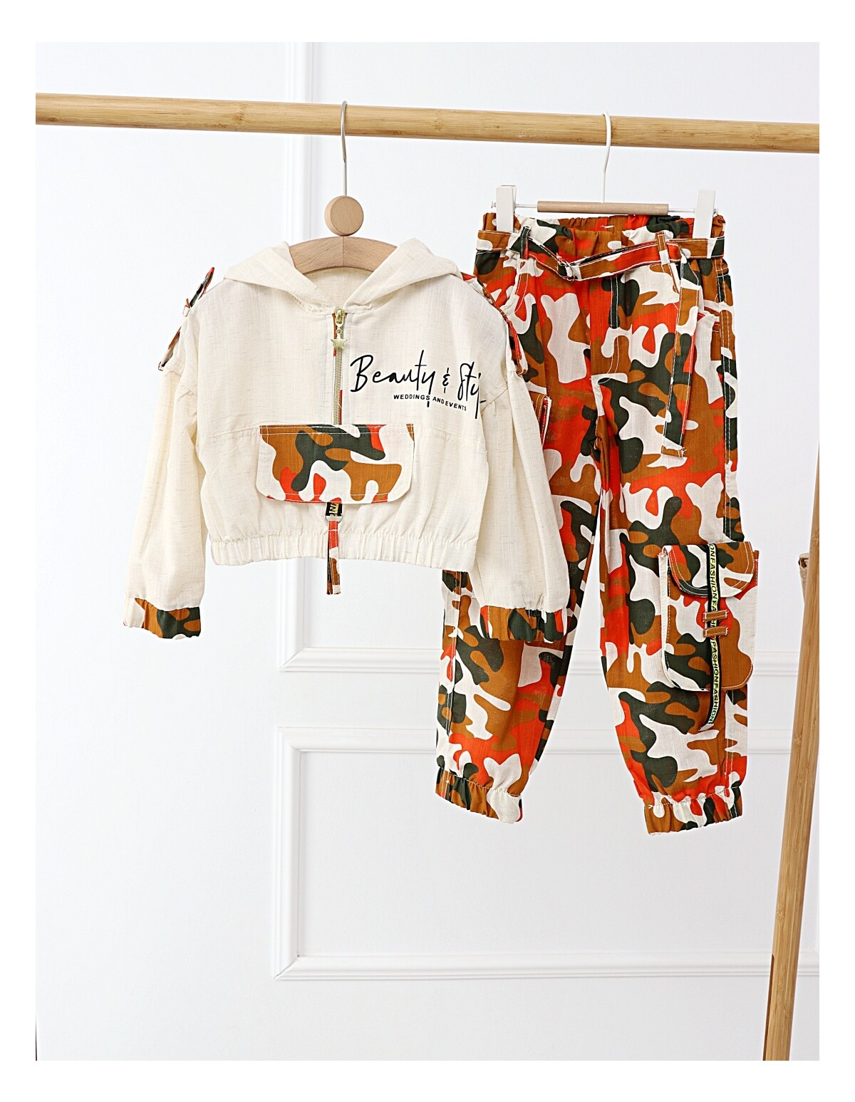 Set Beauty Style Crop Top Army cu portocaliu