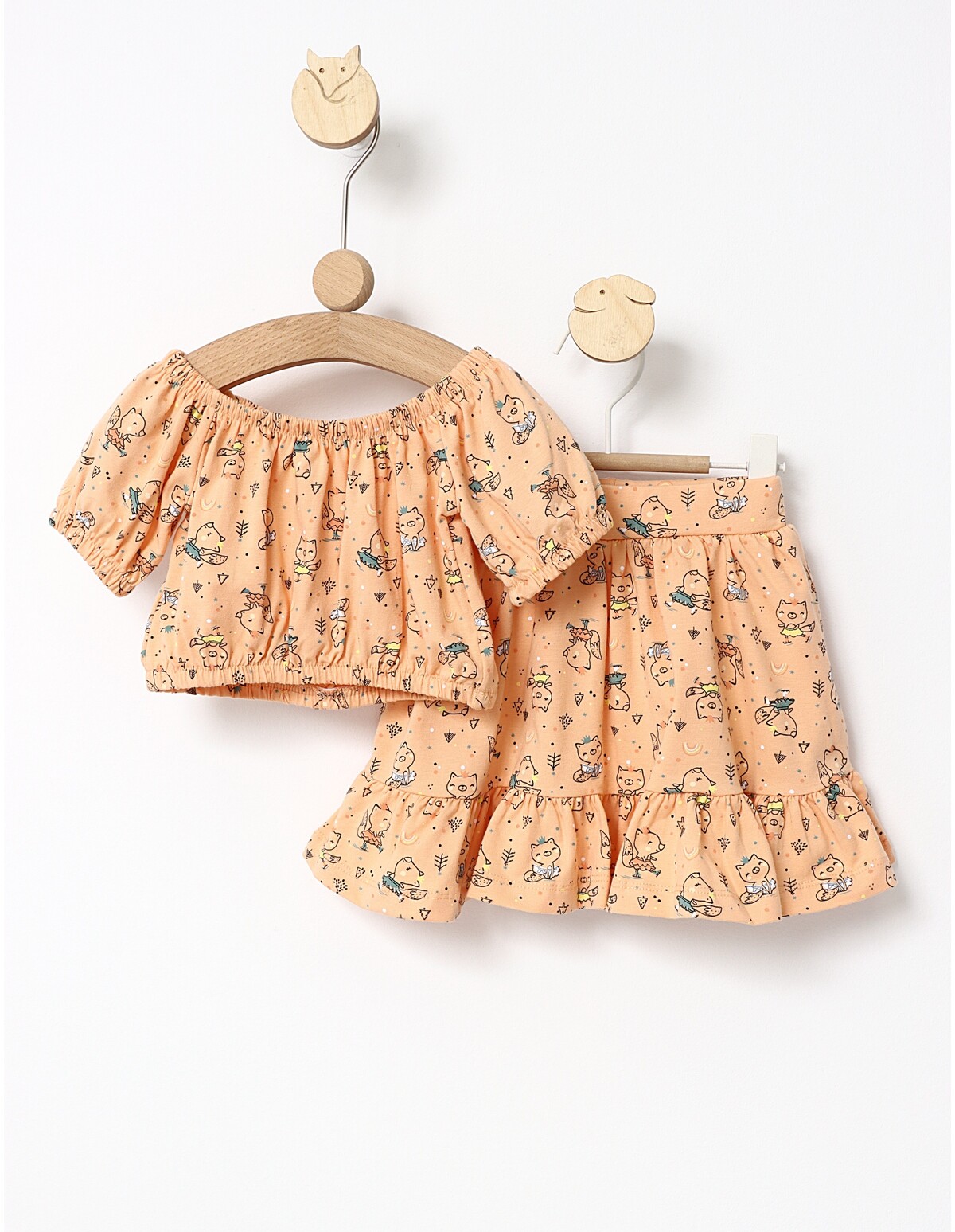 Set vara Top Crop bluza si fustita corai