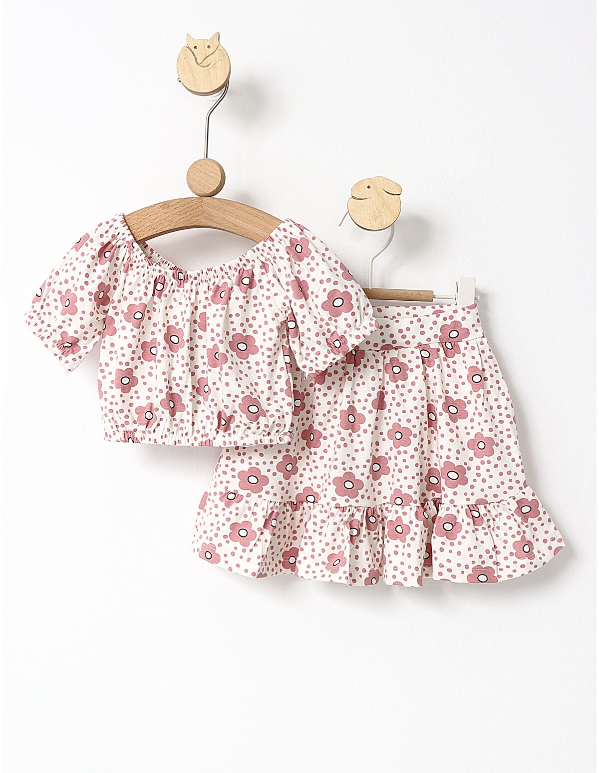Set vara Top Crop bluza si fustita roz-prafuit