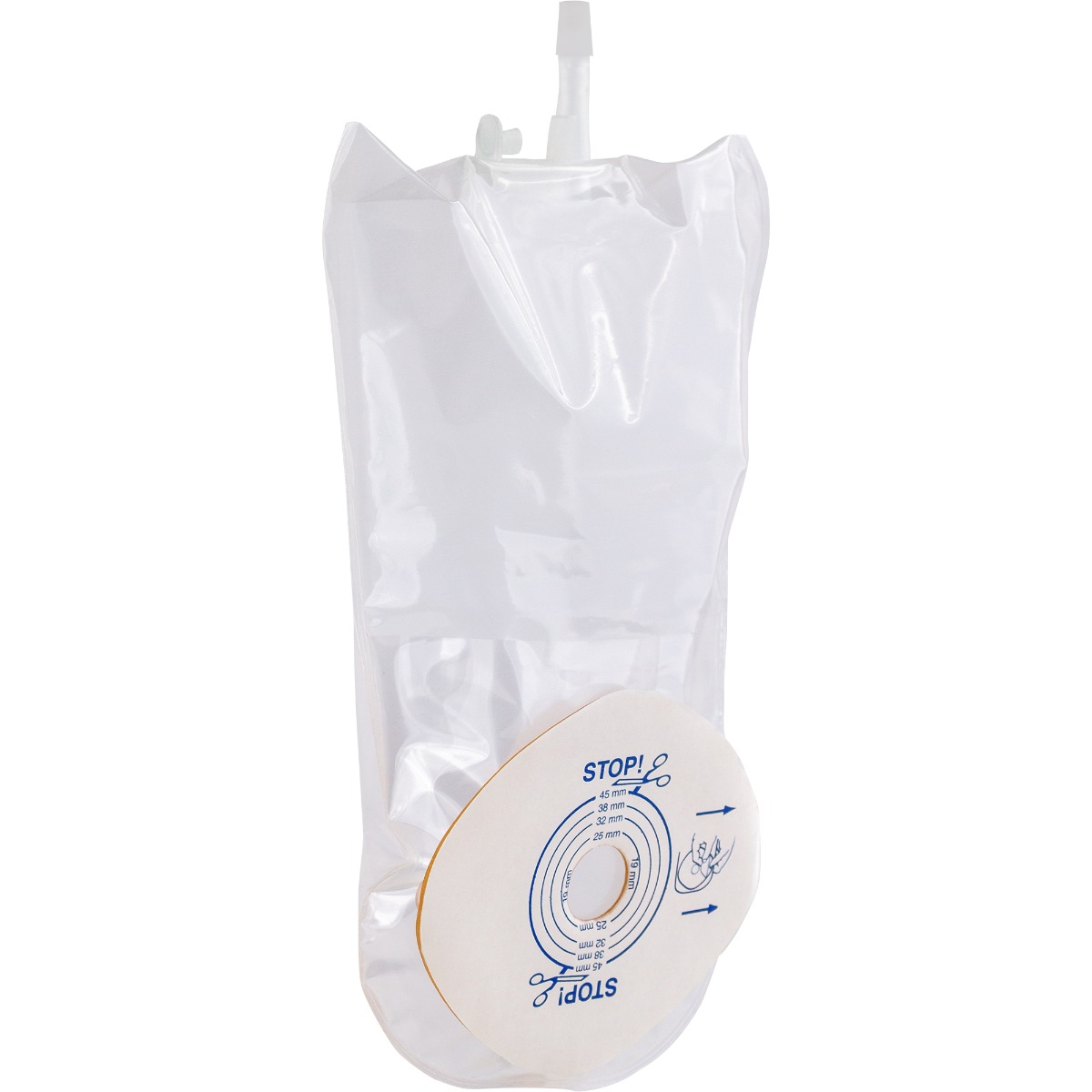 Sac urostomie pretaiat Ø 19 mm - pachet 10 bucati (bej / transparent)