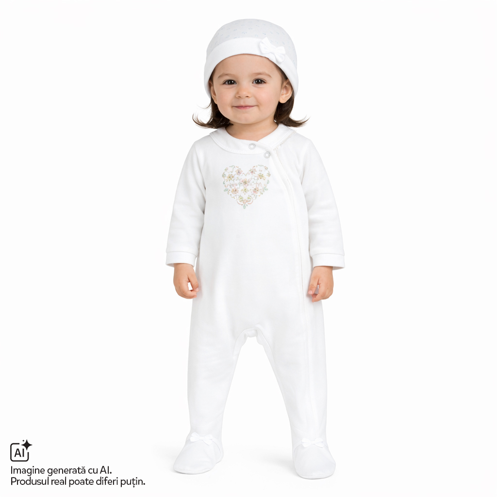 Salopeta bebelusi Chicco deschidere in fata, Alb cu model, 01597-70MFCI