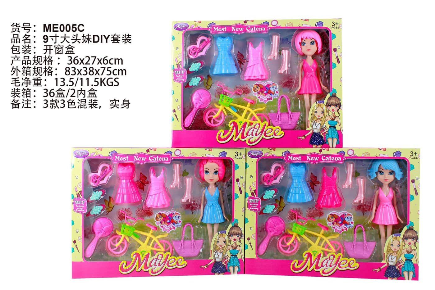 Papusa cu bicicleta, rochite de schimb si alte accesorii, Mayee, 36×27×6cm, multicolor, +3ani, Engros