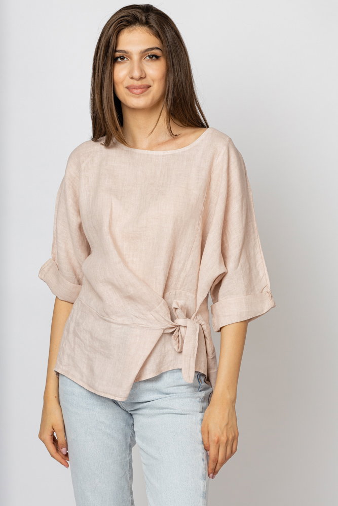 Bluza din in roz prafuit masura mare cu nod pe talie Talie unica