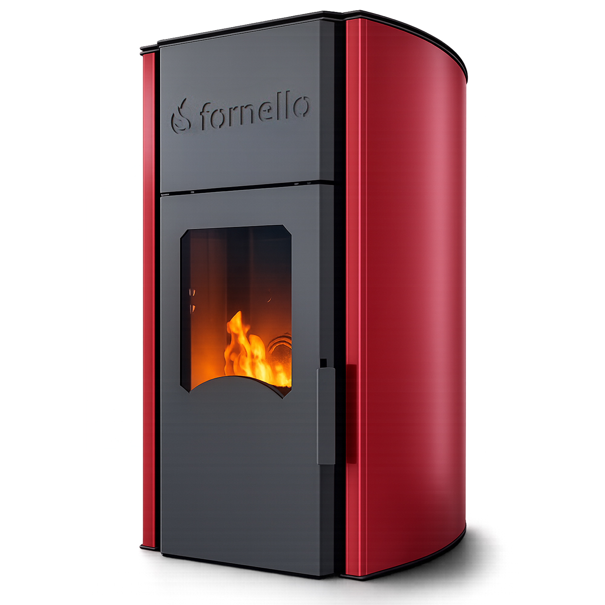 Termosemineu centrala peleti Fornello Royal 25 kw , complet echipat pentru incalzire, pompa, vas expansiune, automatizare, telecomanda, buncar peleti tiraj fortat culoare visiniu (Bordeaux)