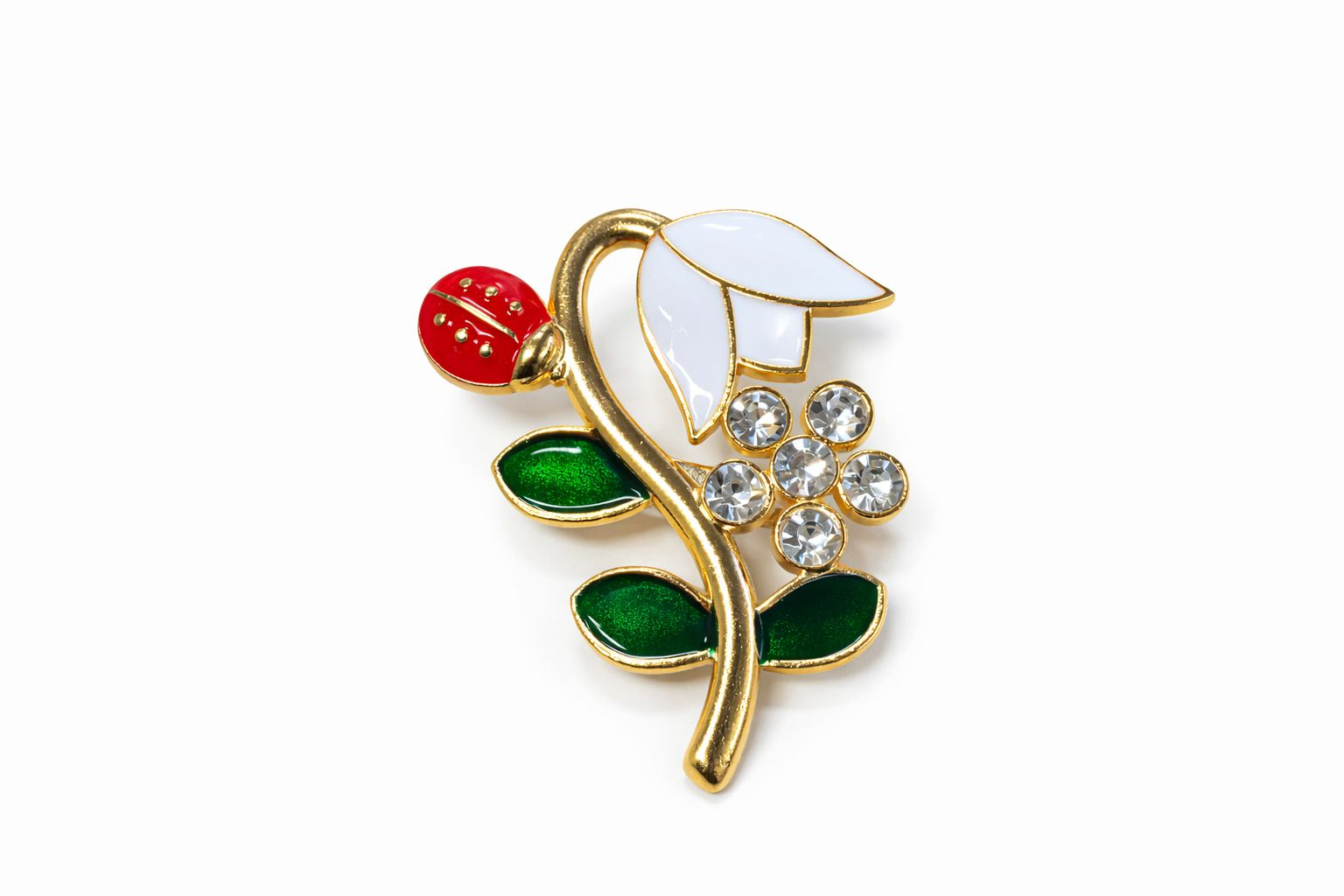 Brosa floare 5x5 cm, finisaj auriu cu email si pietre, cadou primavara elegant