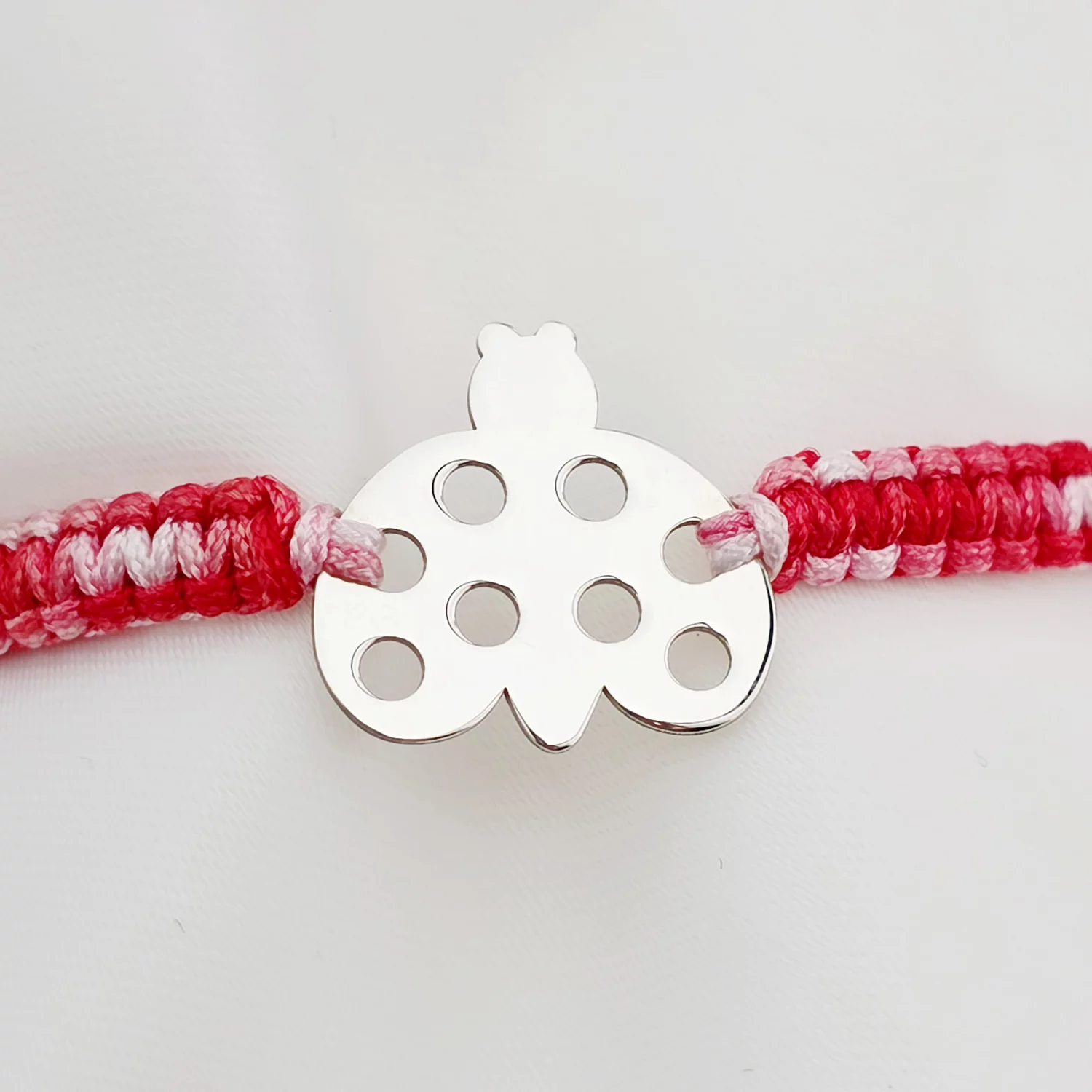Bratara Martisor - Simbol buburuza din Argint 925 - Snur impletit rosu&alb