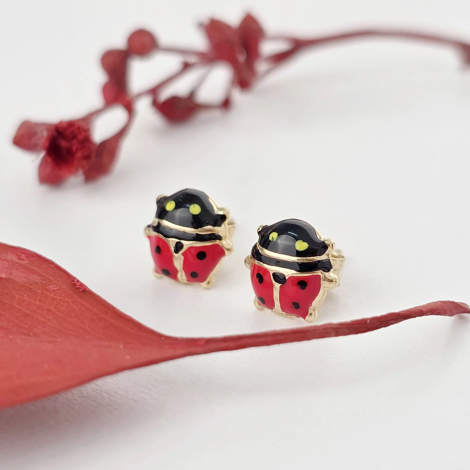 Cercei copii/bebe - Model buburuza - Aur Galben 14K - Inchizatoare sigura si confortabila cu filet