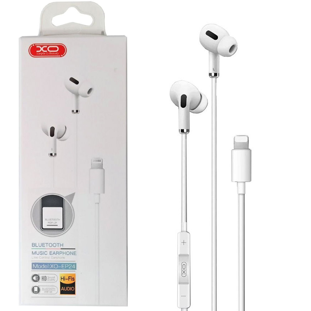 Casti cu Fir Lightning, XO-EP24, Compatibile iPhone, Cablu 1.2m, Microfon si Control muzica, Alb Engros
