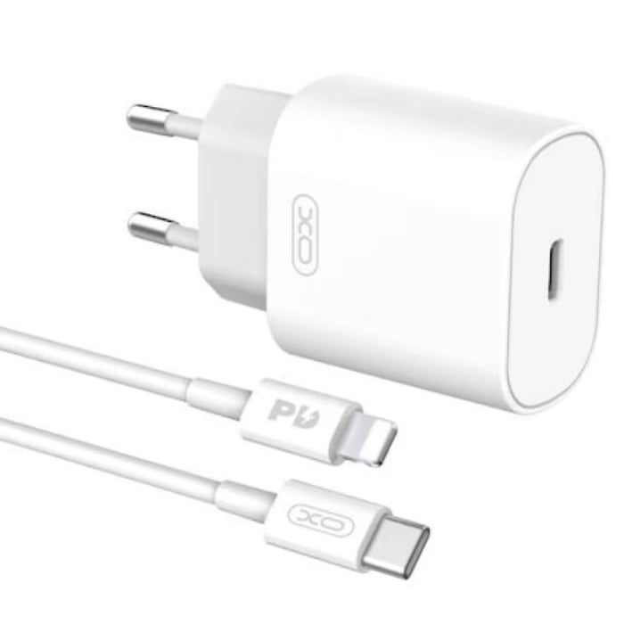 Adaptor Incarcator XO-L91 EU si Cablu Lightning, pentru iPhone, Incarcare rapida 25W, Alb Engros
