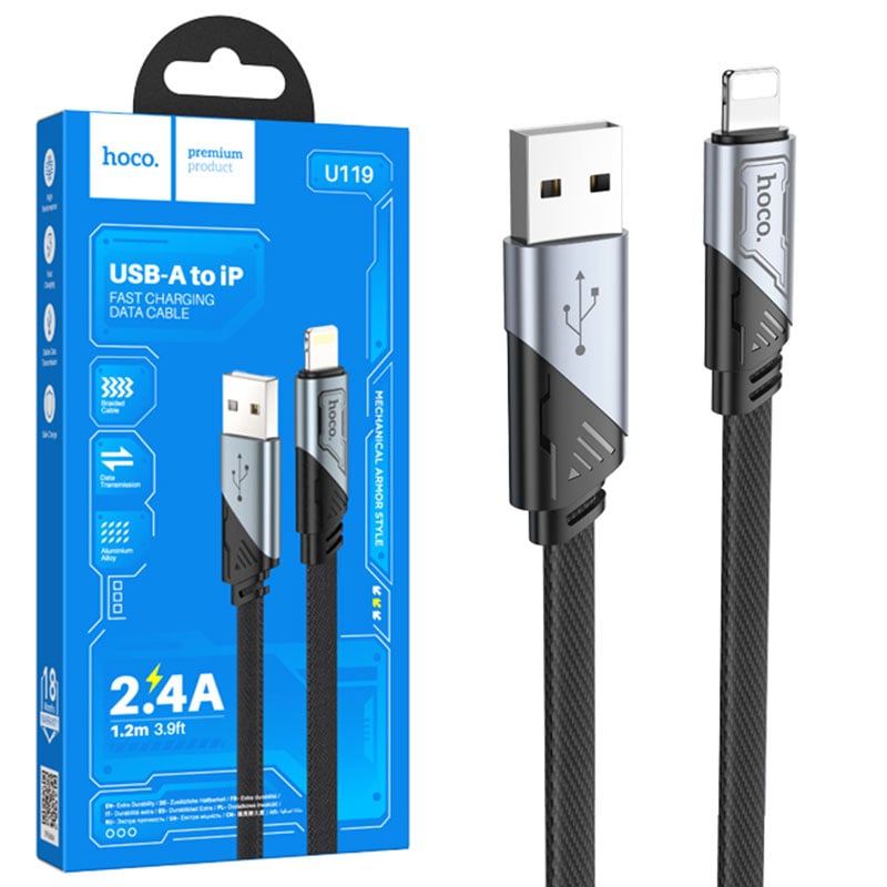 Cablu Hoco U119, USB la Lightning, 1.2m, Compatibil iPhone, Putere 2.4A, Transfer Date, Negru Engros