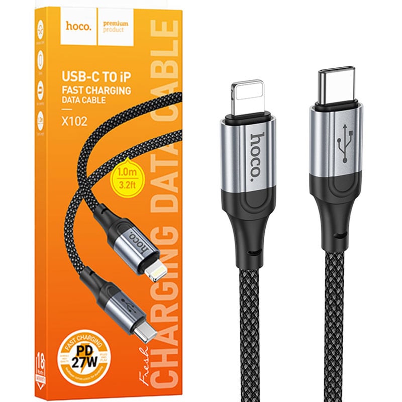 Cablu Hoco X102, Type-C la Lightning, 1m, Compatibil iPhone, Transfer Date 27W, Negru Engros