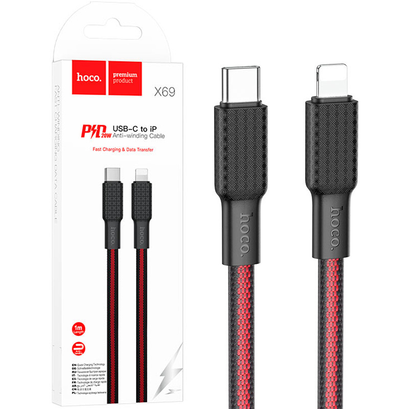 Cablu Hoco X69, Type-C la Lightning, 1m, Compatibil iPhone, Putere 20W, Transfer Date, Negru-Rosu Engros
