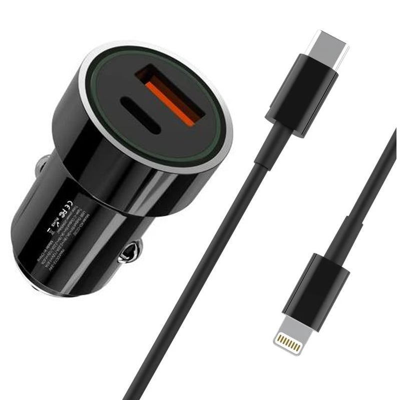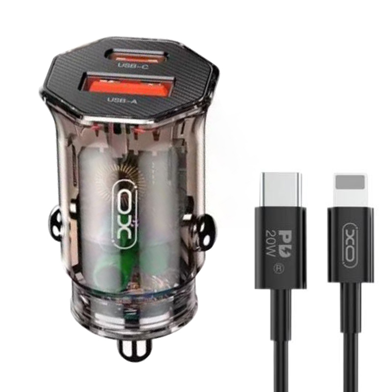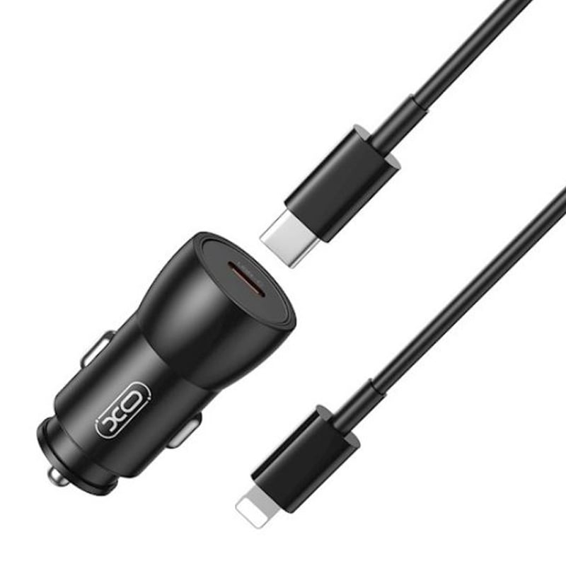 Set Incarcator Auto XO-TZ11 cu Cablu Lightning, Compatibil iPhone, Incarcare rapida PD20W, Negru Engros