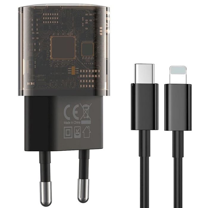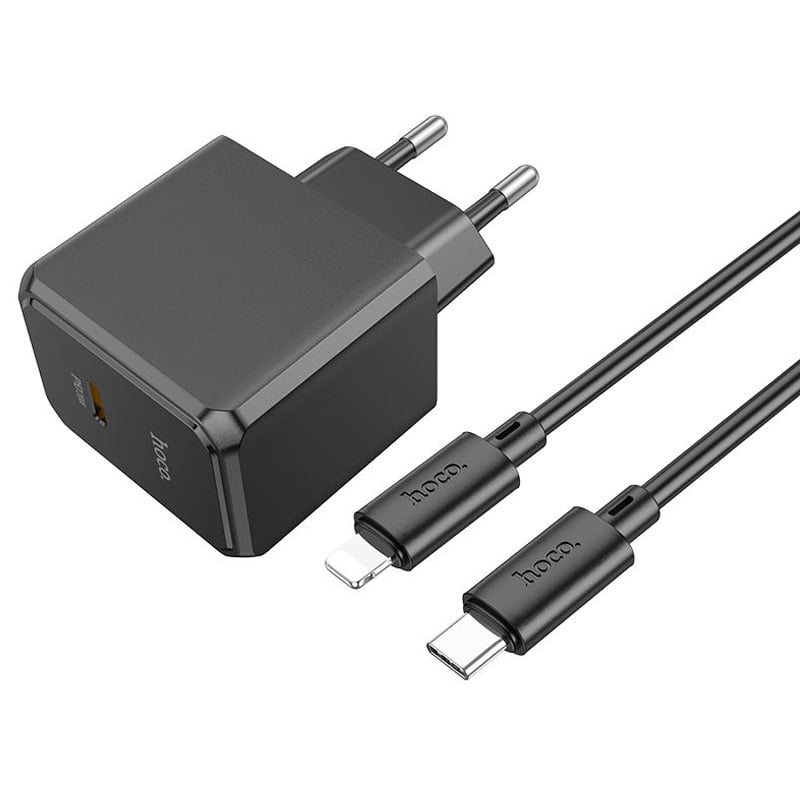 Set Adaptor HOCO N61 si Cablu Lightning, Compatibil iPhone, Incarcare rapida 20W, Tehnologie GaN, Negru Engros
