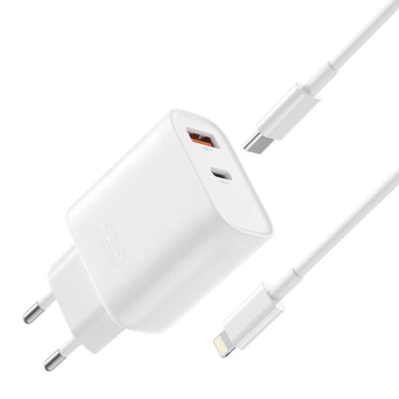 Set Incarcator XO-L116 cu Cablu Lightning, pentru iPhone, Adaptor Dual Port, Incarcare rapida 30W, Alb Engros